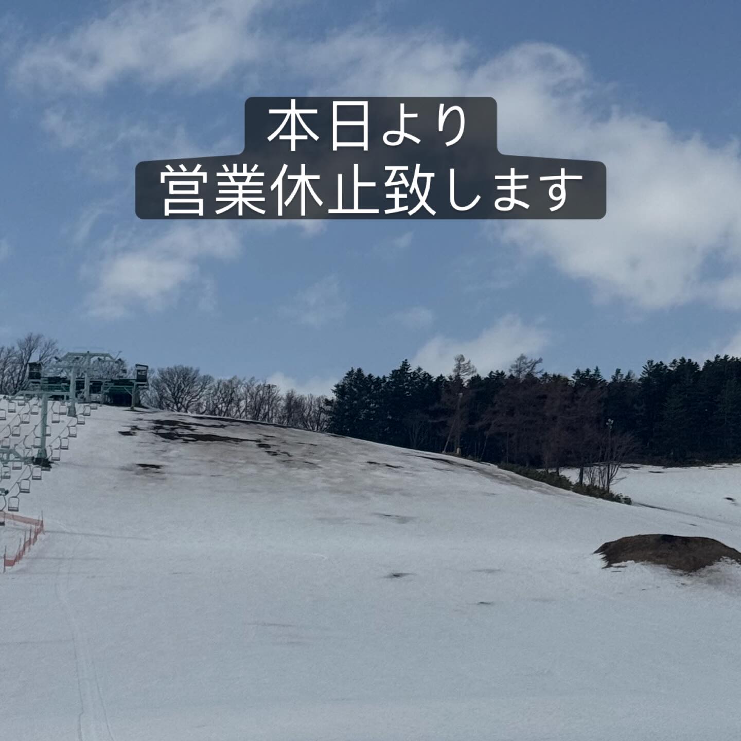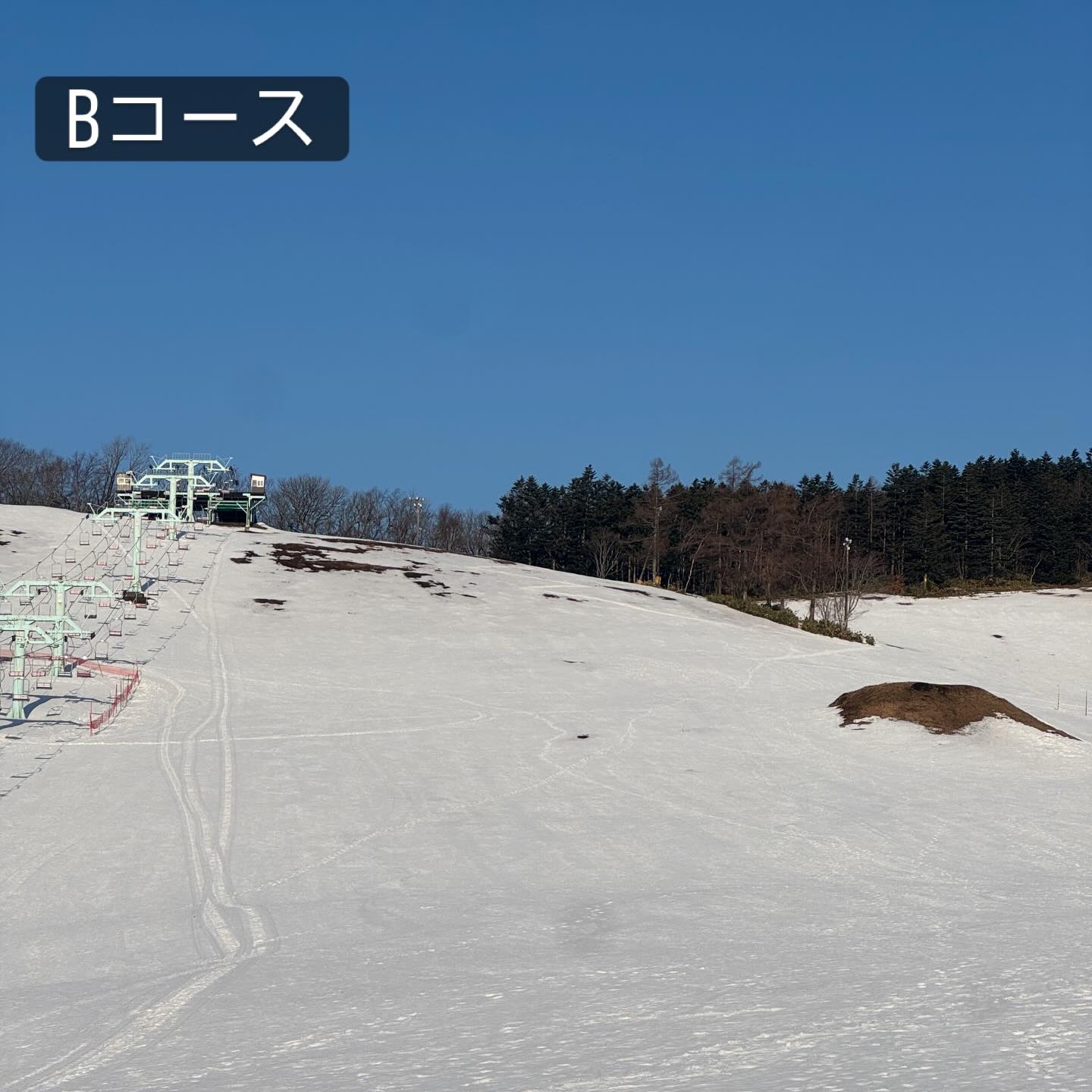 2/22気温4℃晴、夜の降雪はありません。昨日からの暖かさと風によってゲレンデの雪が少なくなってきました。各コースの山頂付近にブッシュが見えてきています。今日は昨日より暖かくなる予報なので注意して滑走して下さい。